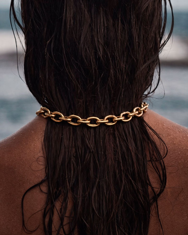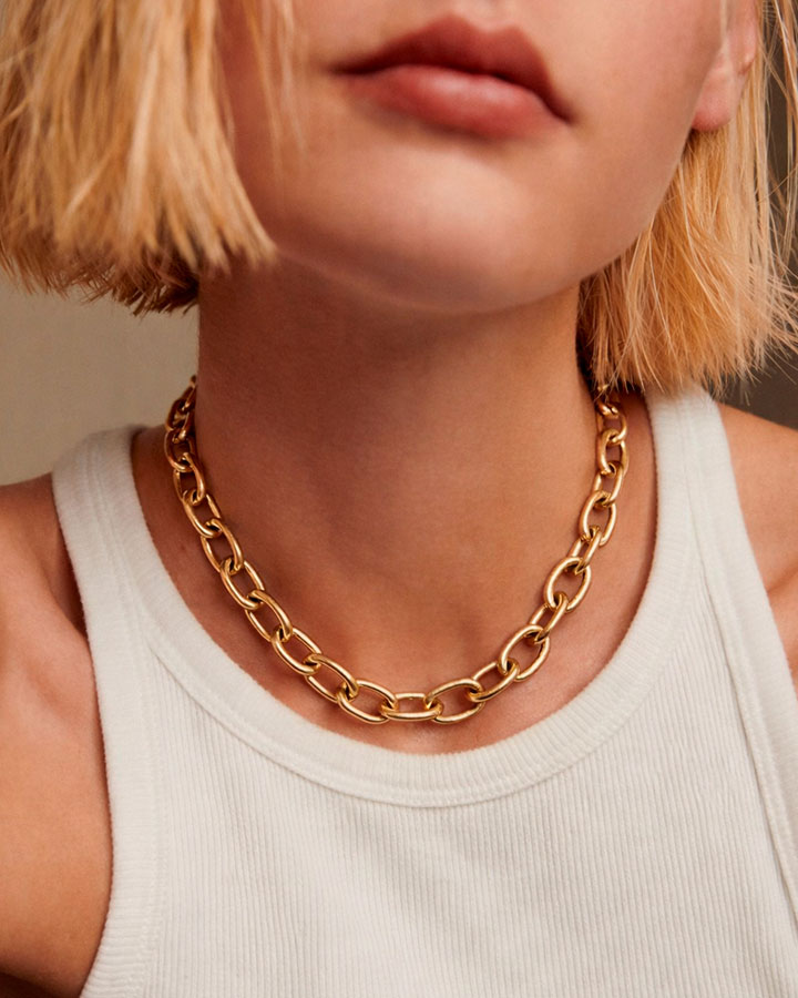 Collar de acero inoxidable en acabado dorado brillo mate.