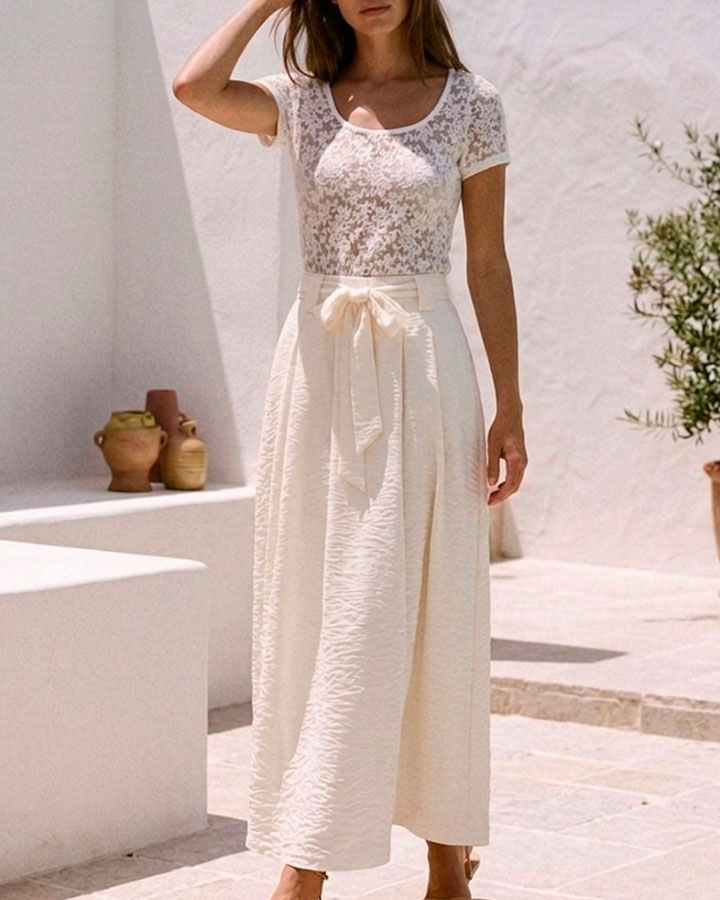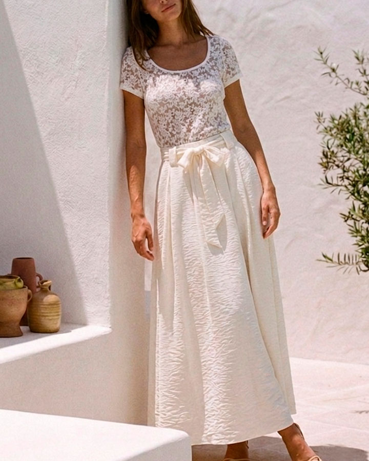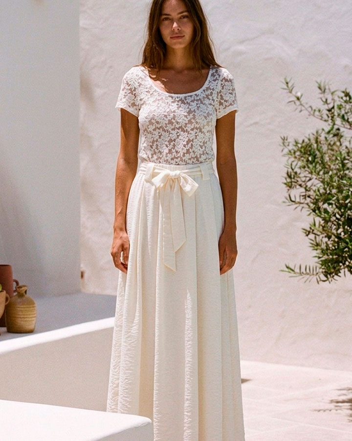 Falda larga confeccionada en tejido de viscosa con textura sutil.