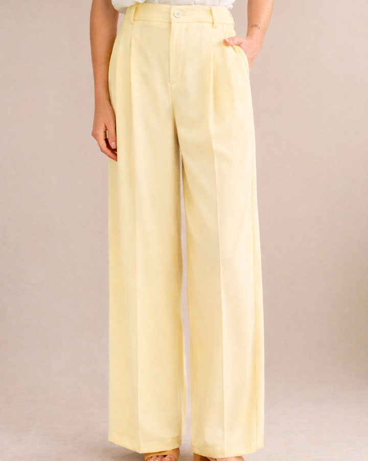 Pantalón de talle medio/alto con corte amplio, confeccionado en tejido fluido que aporta una caída impecable. Diseño de pinzas frontales y cintura estructurada con cierre de botón, que estiliza la figura y ofrece un ajuste cómodo. Ideal para un look elegante y relajado, perfecto para el día a día o una ocasión especial.