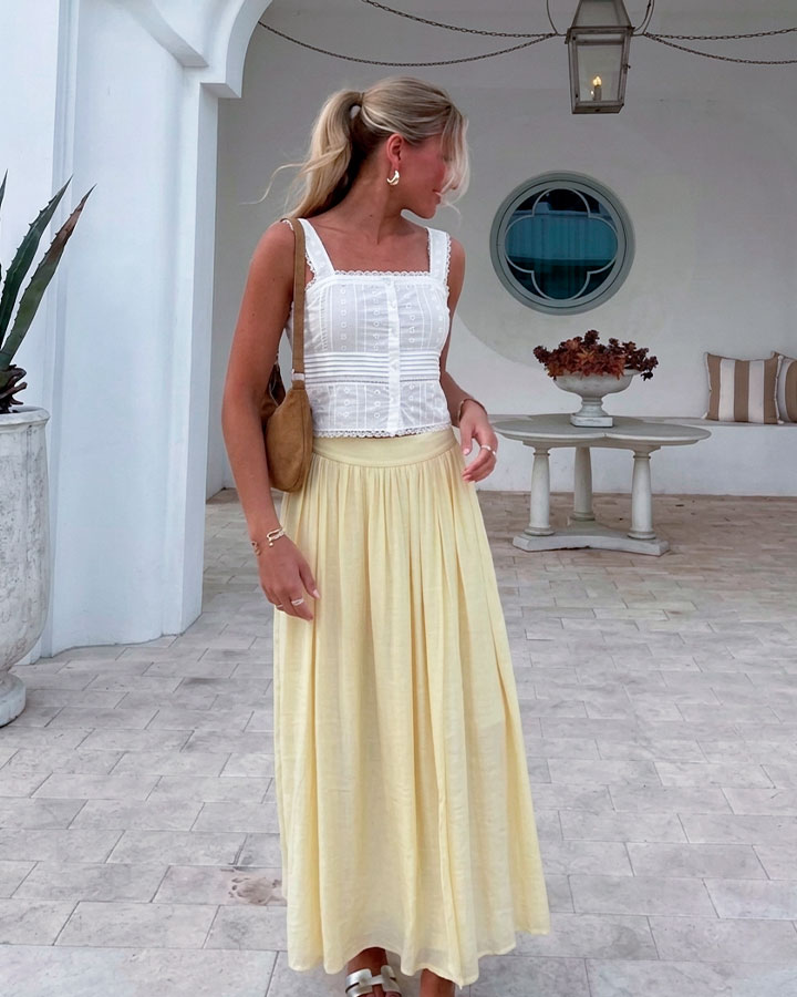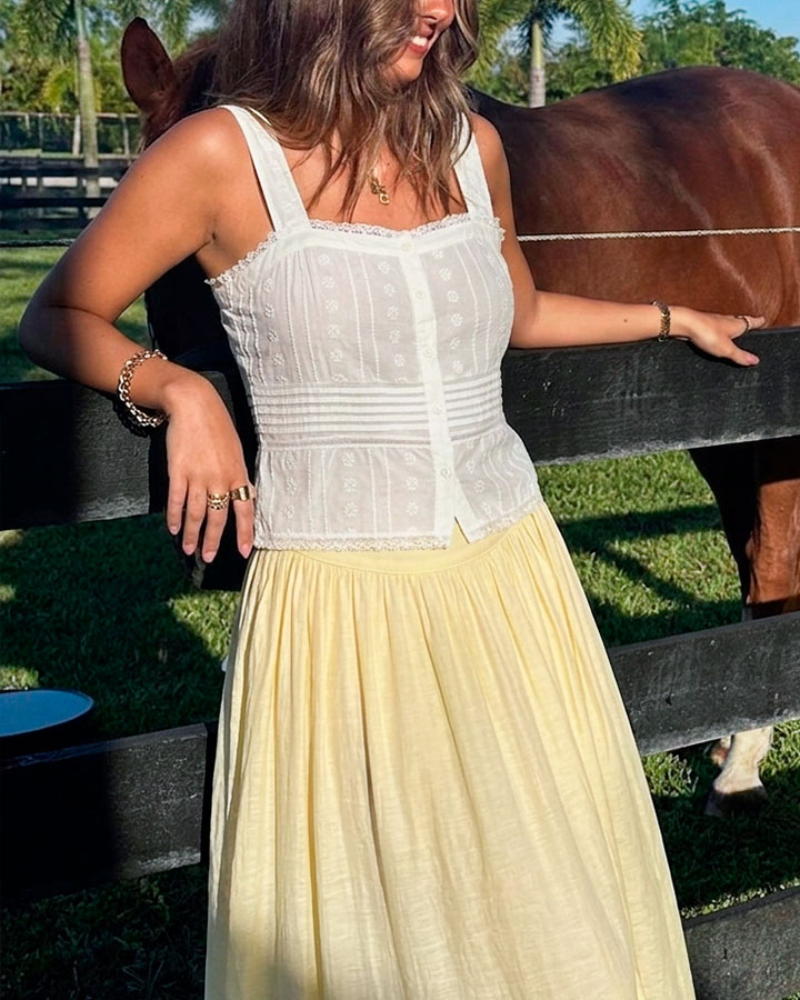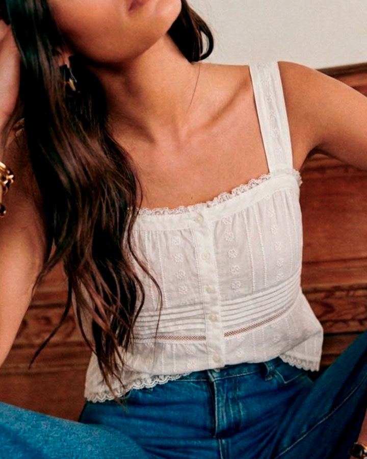 Top de algodón confeccionado en tejido ligero con bordado calado.