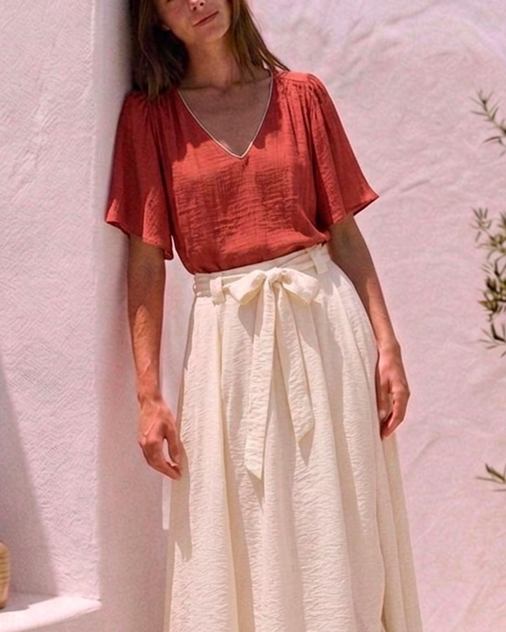 Blusa confeccionada en tejido ligero con acabado ligeramente texturizado.